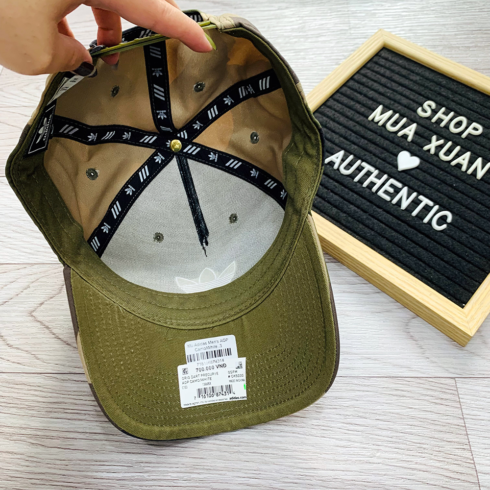 Logo Adidas 3 lá trắng và chữ Adidas được thêu nổi ấn tượng.