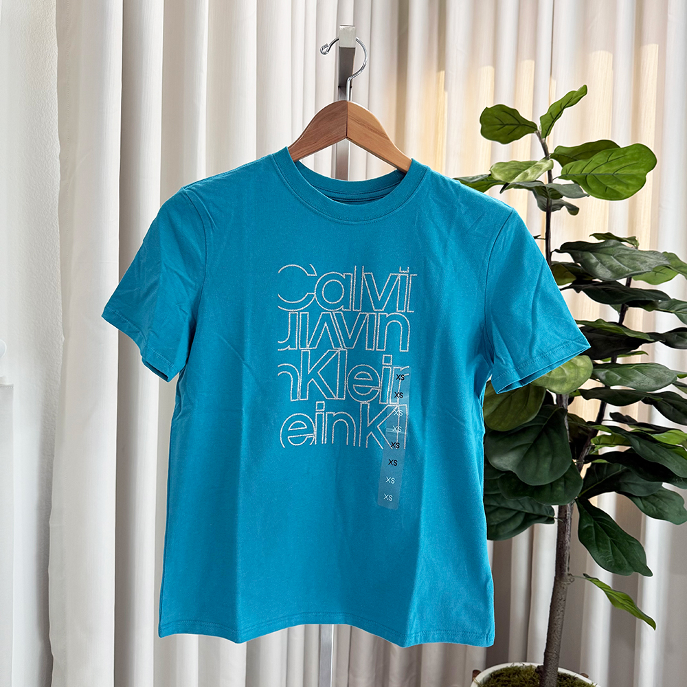 Áo Calvin Klein Glitter Logo Graphic Classic - Teal Slate, Size XS