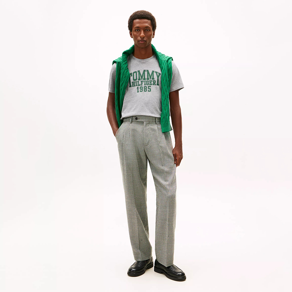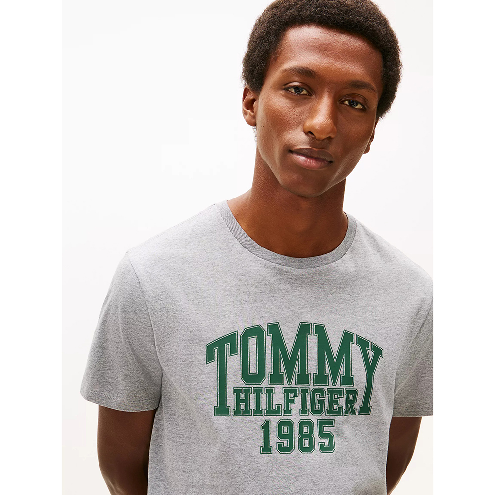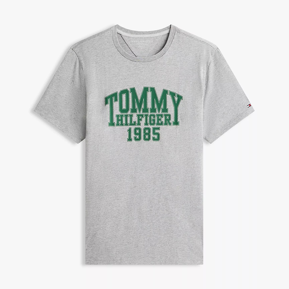 Logo Tommy Hilfiger 1985 được in nổi ở mặt trước áo tạo điểm nhấn.
