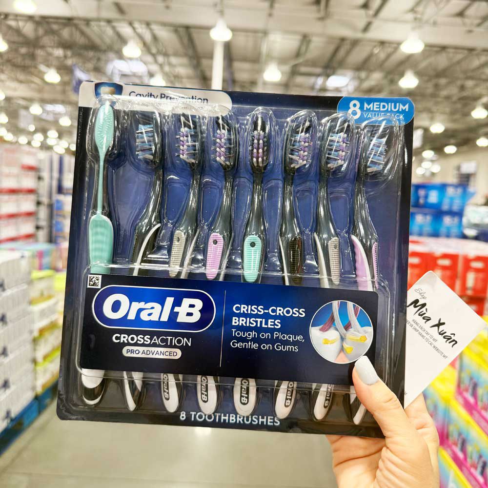 Bàn chải đánh răng Oral-B CrossAction Pro-Advanced được trang bị lông bàn chải CrissCross mạnh mẽ, loại bỏ mảng bám hiệu quả, đồng thời nhẹ nhàng với nướu.