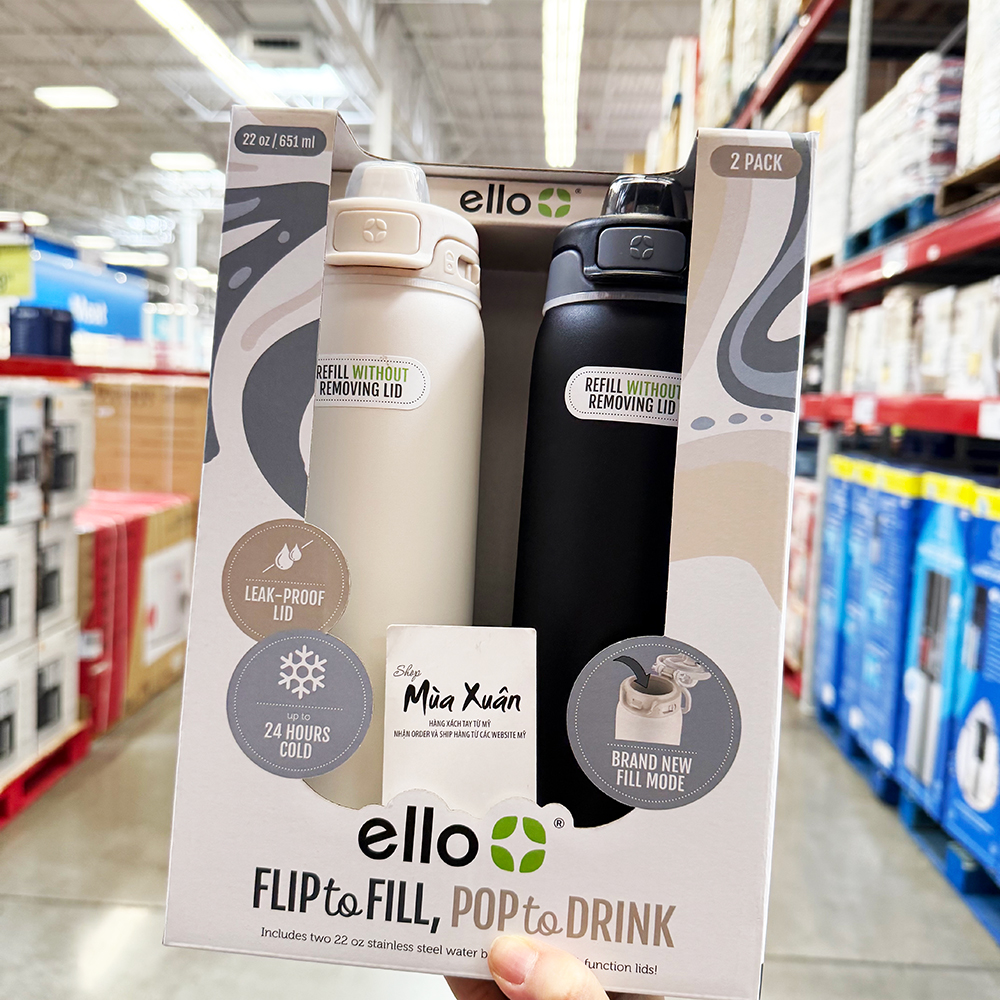 Bình nước Ello Pop & Fill Stainless Steel có kết cấu thép không gỉ hai lớp cao cấp mang lại độ bền vô song trong khi vẫn giữ đồ uống mát lạnh sảng khoái lên đến 24 giờ.