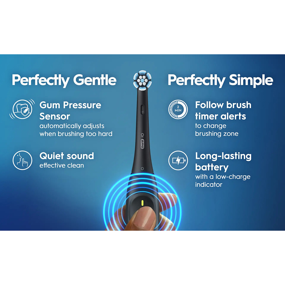 Loại bỏ mảng bám hiệu quả hơn 100% so với bàn chải đánh răng thông thường với công nghệ iO tiên tiến nhất của Oral-B: mạnh mẽ với mảng bám, nhẹ nhàng với nướu.