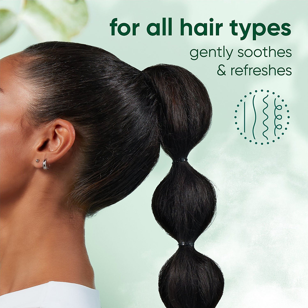 Chiết xuất từ tinh dầu khuynh diệp và tràm trà giúp dưỡng ẩm và làm mát da đầu, mang đến hương thơm tươi mát, sảng khoái.