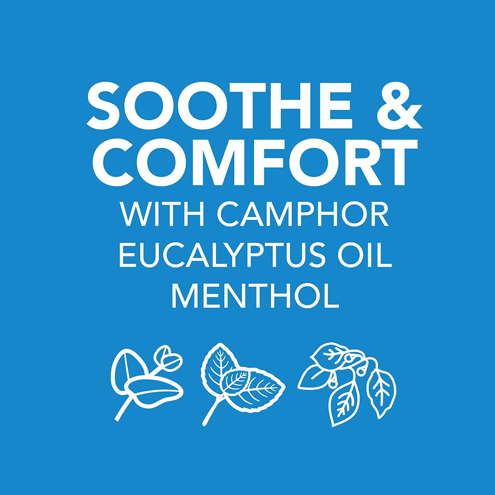 Được các chuyên gia đặc chế với ba thành phần giảm ho hoạt tính: tinh dầu bạc hà, long não và tinh dầu khuynh diệp, có tác dụng nhanh chóng giảm ho, giúp thở dễ dàng hơn.
