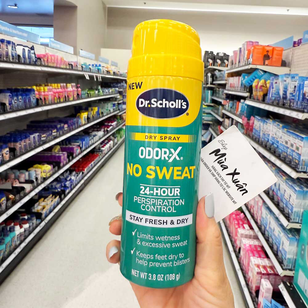 Dr.Scholl's Odor-X No Sweat Dry Spray giúp kiểm soát mồ hôi chân suốt 24 giờ, đảm bảo đôi chân khô ráo và thoải mái suốt cả ngày.