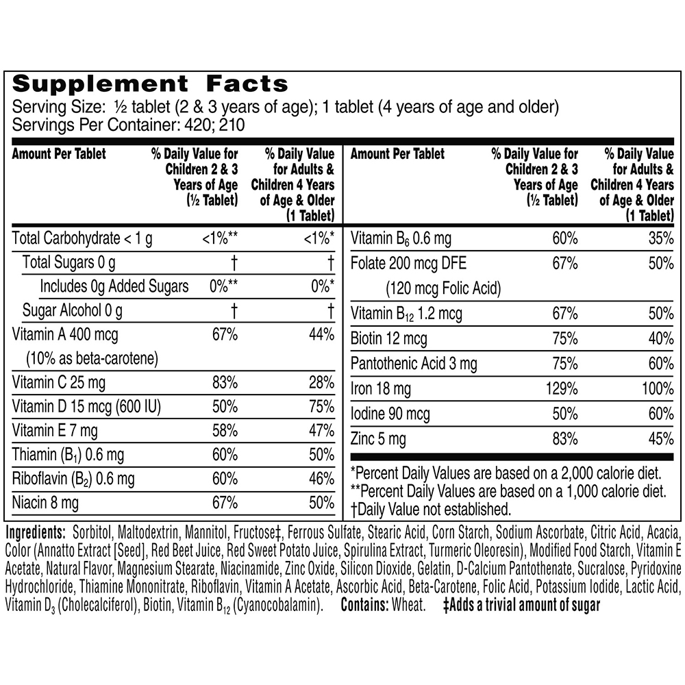 Thành phần sắt trong Vitamin Flintstones tương đương 15 cốc cải xoăn nấu chín, là nguồn cung cấp sắt tuyệt vời cho trẻ đang lớn.