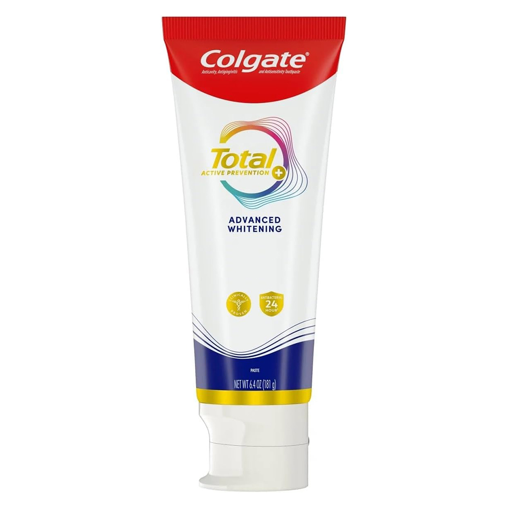 Duy trì sức khỏe răng miệng tốt với kem đánh răng Colgate Total Advanced Whitening, làm sạch sâu, loại bỏ vết bẩn tốt hơn gấp 6 lần, bảo vệ khoang miệng chống lại vi khuẩn trên răng, lưỡi, má và nướu trong suốt 24 giờ.