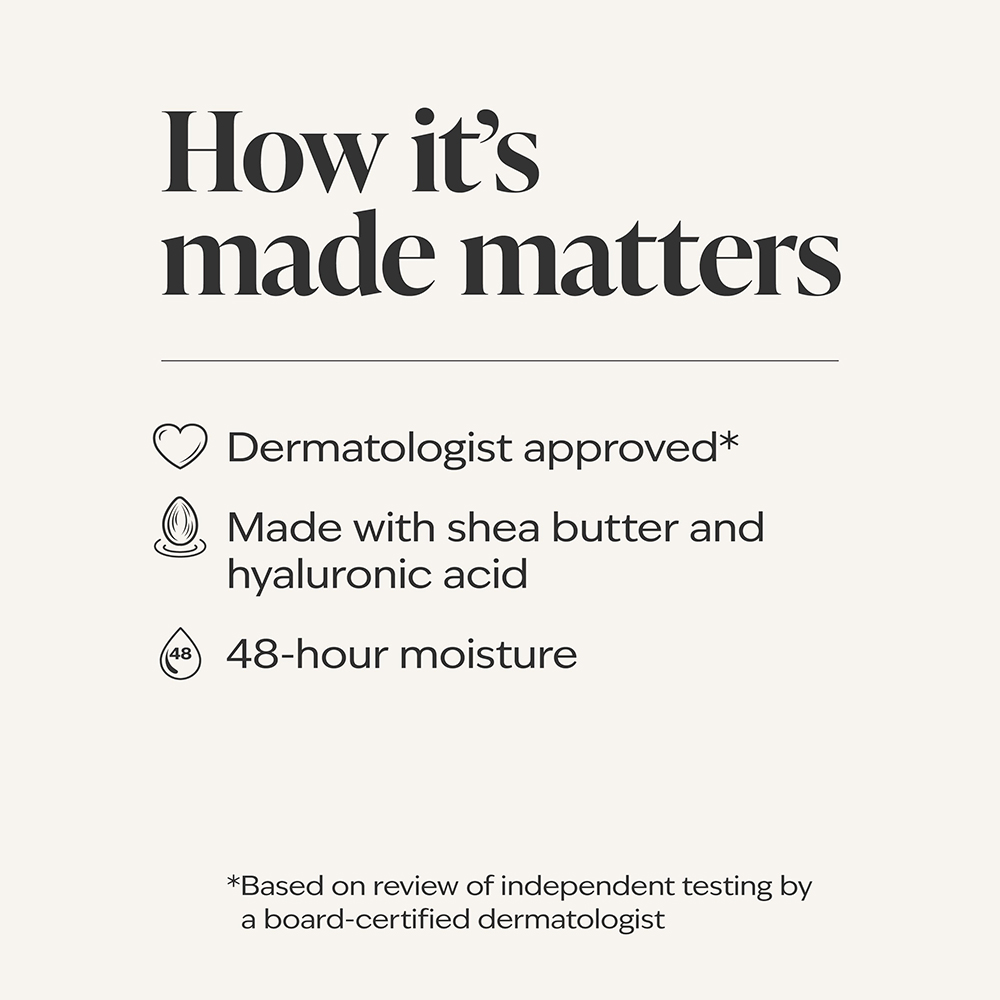 Thành phần bơ hạt mỡ, hyaluronic acid, bơ ca cao, vitamin E và nha đam cung cấp độ ẩm mạnh mẽ trong 24 giờ, nuôi dưỡng làn da thêm mịn màng, tràn đầy sức sống.