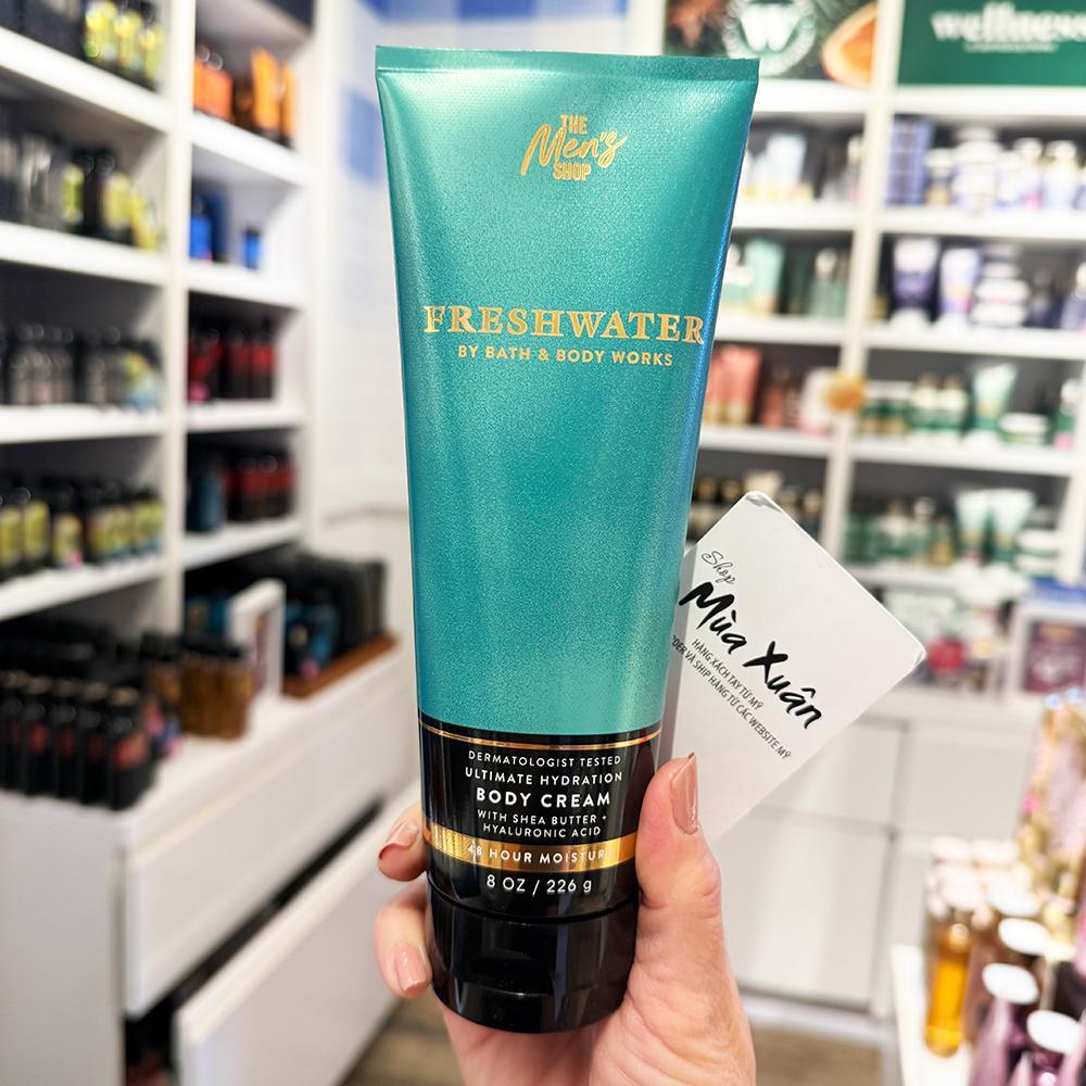 Kem dưỡng da Bath & Body Works Freshwater thuộc bộ sưu tập dành cho nam giống như một chuyến bơi thư giãn ở dãy Alps, nó kết hợp dòng nước suối núi tinh khiết nhất từ thiên nhiên, một chút hương cam bergamot Ý tươi mát và một chút hương đất của rêu sồi, tạo nên trải nghiệm hương thơm trong lành, gần gũi với thiên nhiên đến khó quên.