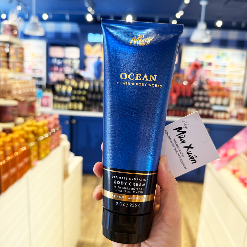 Kem dưỡng da Bath & Body Works Ocean thuộc bộ sưu tập dành cho nam mang đến cảm giác mát lạnh, sảng khoái khi ngâm mình trong làn nước biển xanh thẳm với sự kết hợp của bách xanh, cỏ vetiver và không khí ven biển.
