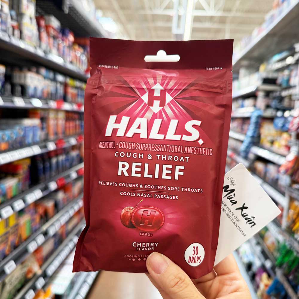 Kẹo ngậm Halls chống ho, làm dịu cổ họng và nghẹt mũi.