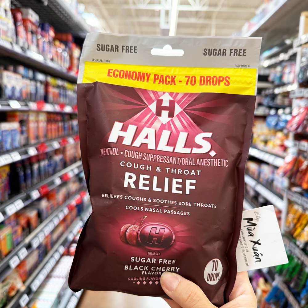 Kẹo ngậm Halls chống ho, làm dịu cổ họng và nghẹt mũi.