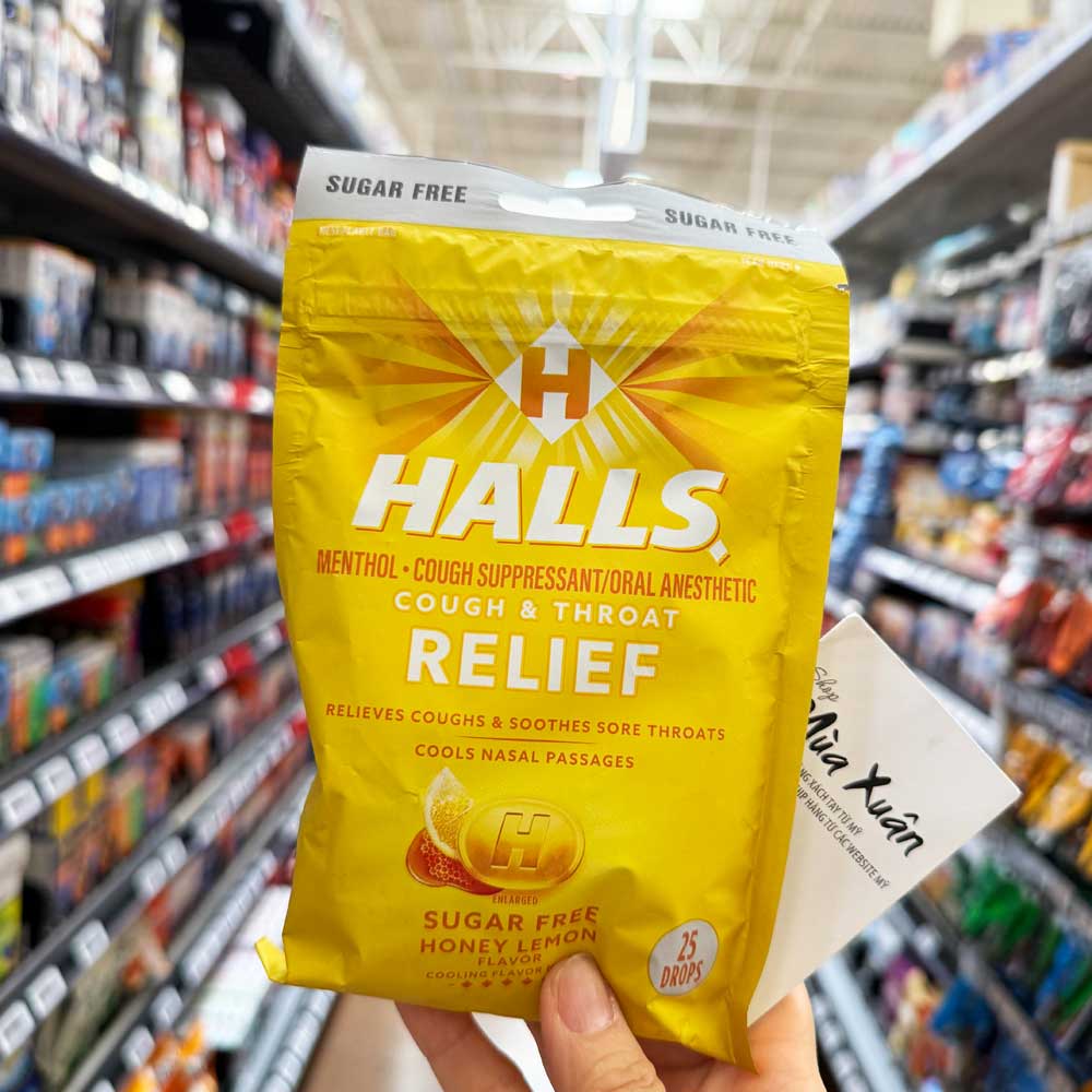 Kẹo ngậm Halls chống ho, làm dịu cổ họng và nghẹt mũi.