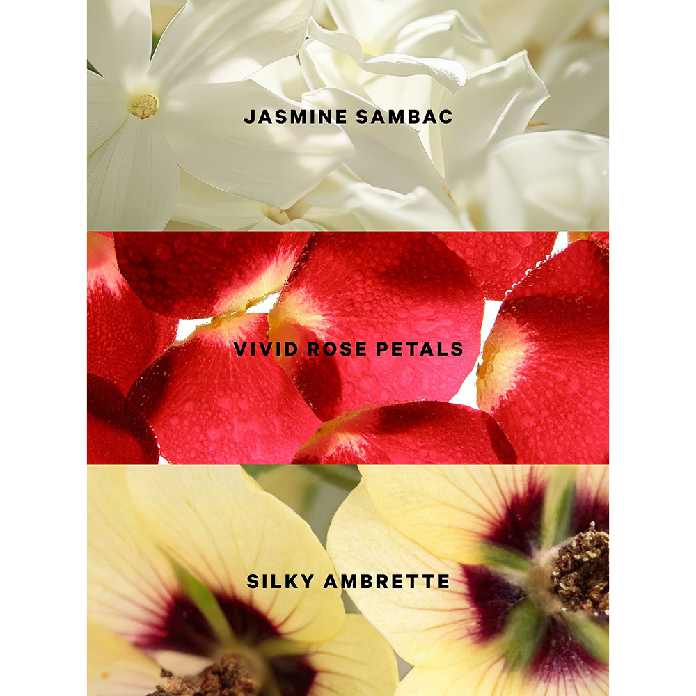 Hương thơm Very Sexy Scarlet nâng niu vẻ quyến rũ với sự kết hợp say đắm của cánh hoa hồng rực rỡ, hoa nhài Sambac đậm đà và hương ambrette mềm mại, mượt mà.
