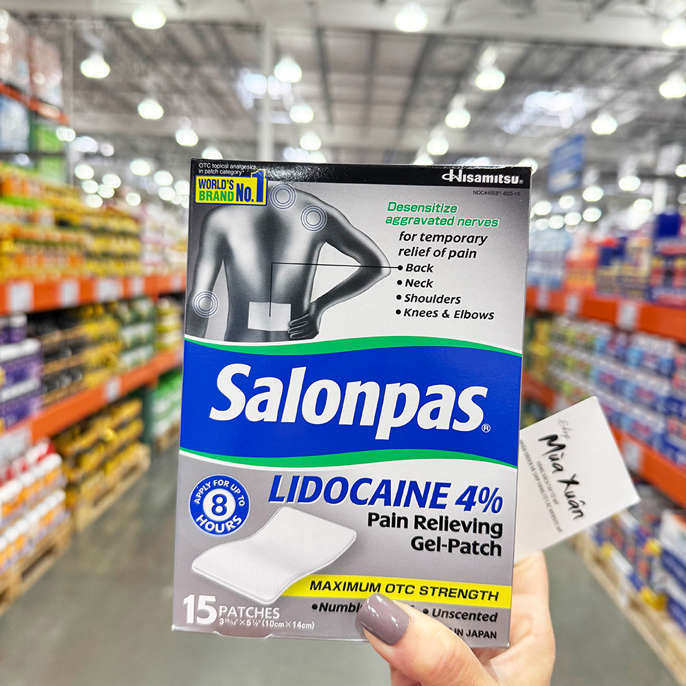 Miếng gel dán giảm đau Salonpas Lidocaine 4%, 15 miếng