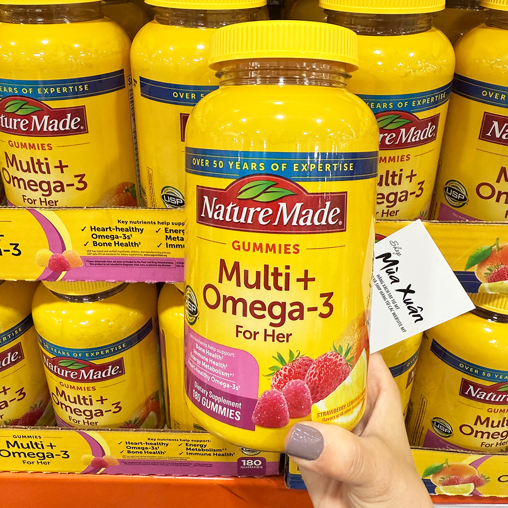 Viên dẻo Nature Made Multi for Her + Omega-3 được đặc chế để hỗ trợ sức khỏe xương, hệ miễn dịch và quá trình chuyển hóa năng lượng dành riêng cho nữ giới.