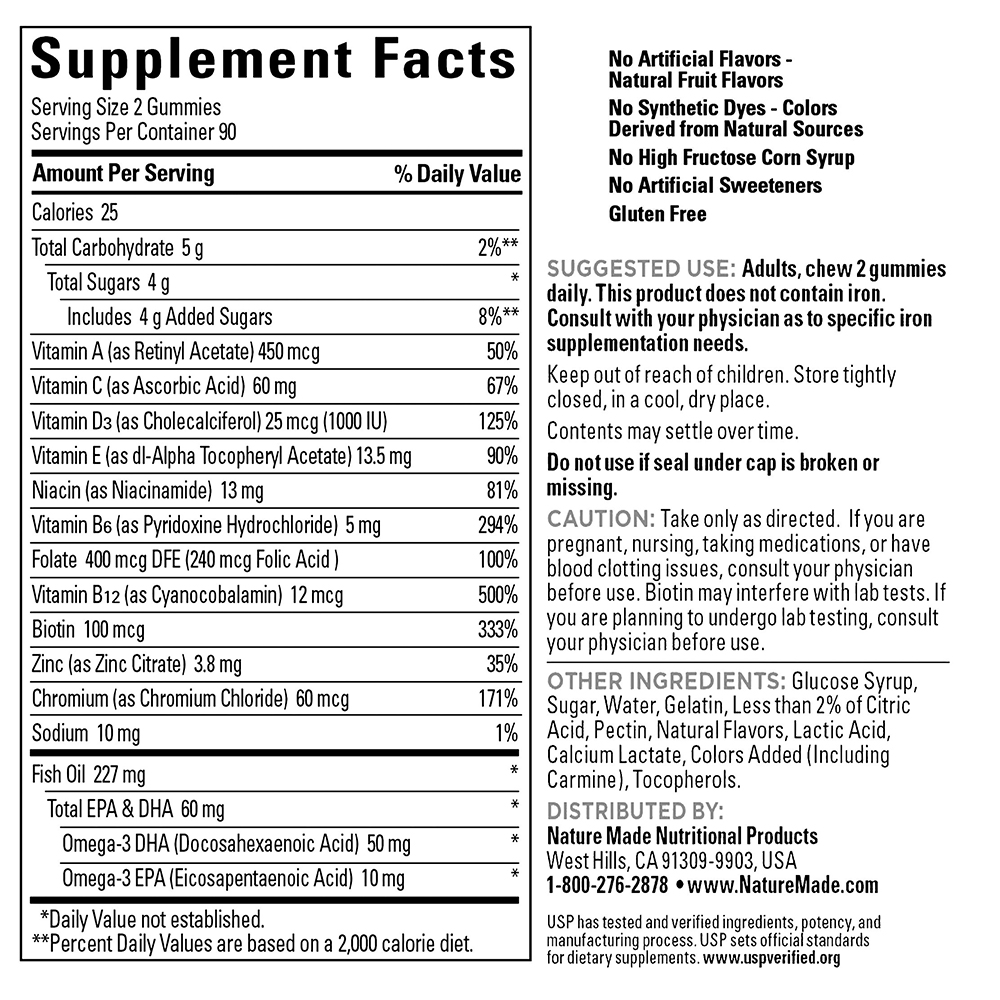 Mỗi 2 viên dẻo cung cấp các loại vitamin thiết yếu hỗ trợ dinh dưỡng hàng ngày, cùng 60 mg EPA và DHA omega-3 từ dầu cá giúp hỗ trợ sức khỏe tim mạch.