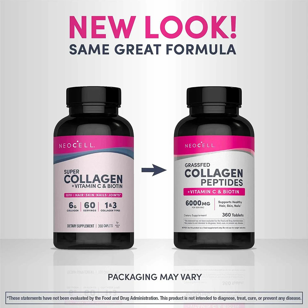 Khơi dậy vẻ rạng rỡ tự nhiên với NeoCell Grassfed Collagen Peptides + Vitamin C & Biotin.