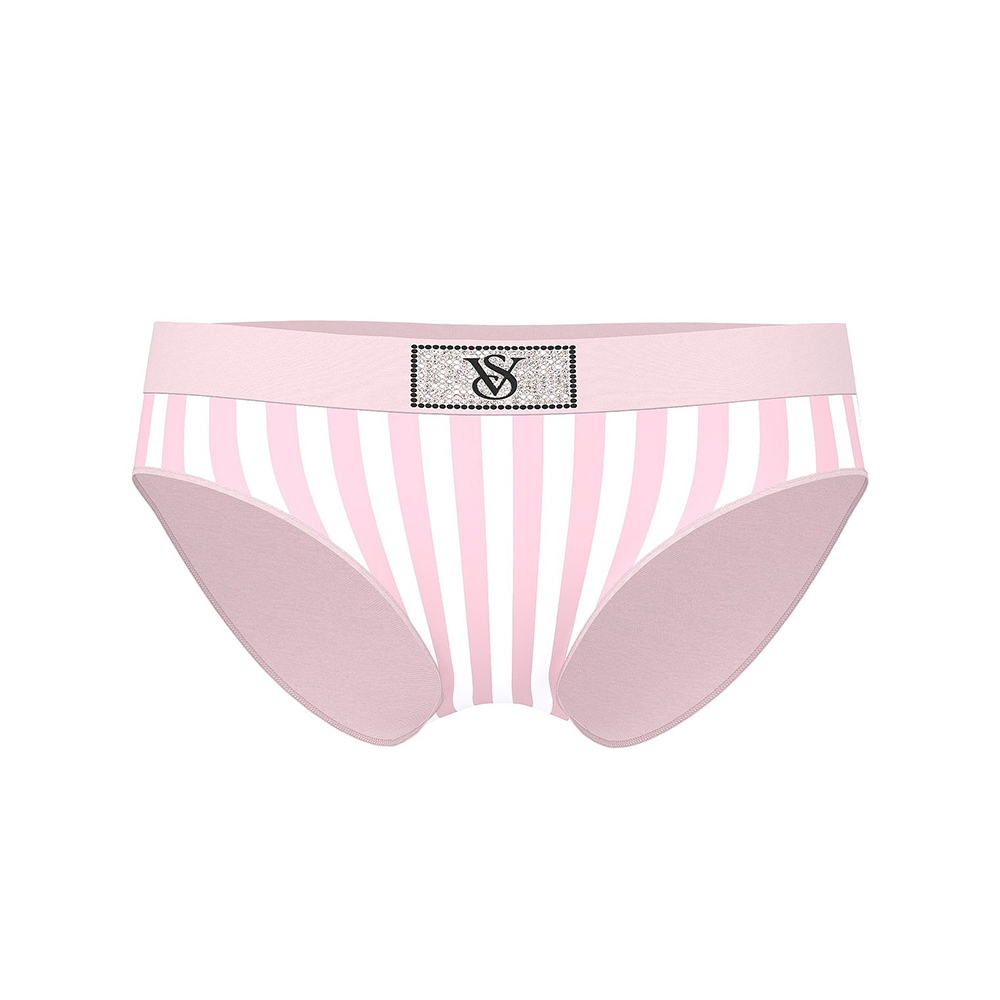 Quần lót Victoria's Secret Logo Cotton Shine Patch Hiphugger với họa tiết kẻ sọc phối màu hồng, có độ vừa vặn hoàn hảo, che phủ toàn bộ, ôm trọn phần mông khoe đường cong vô cùng gợi cảm.