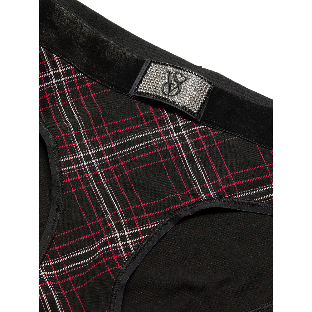 Quần lót Victoria's Secret Logo Cotton Shine Patch Velvet Hiphugger - Black Plaid, Size M
