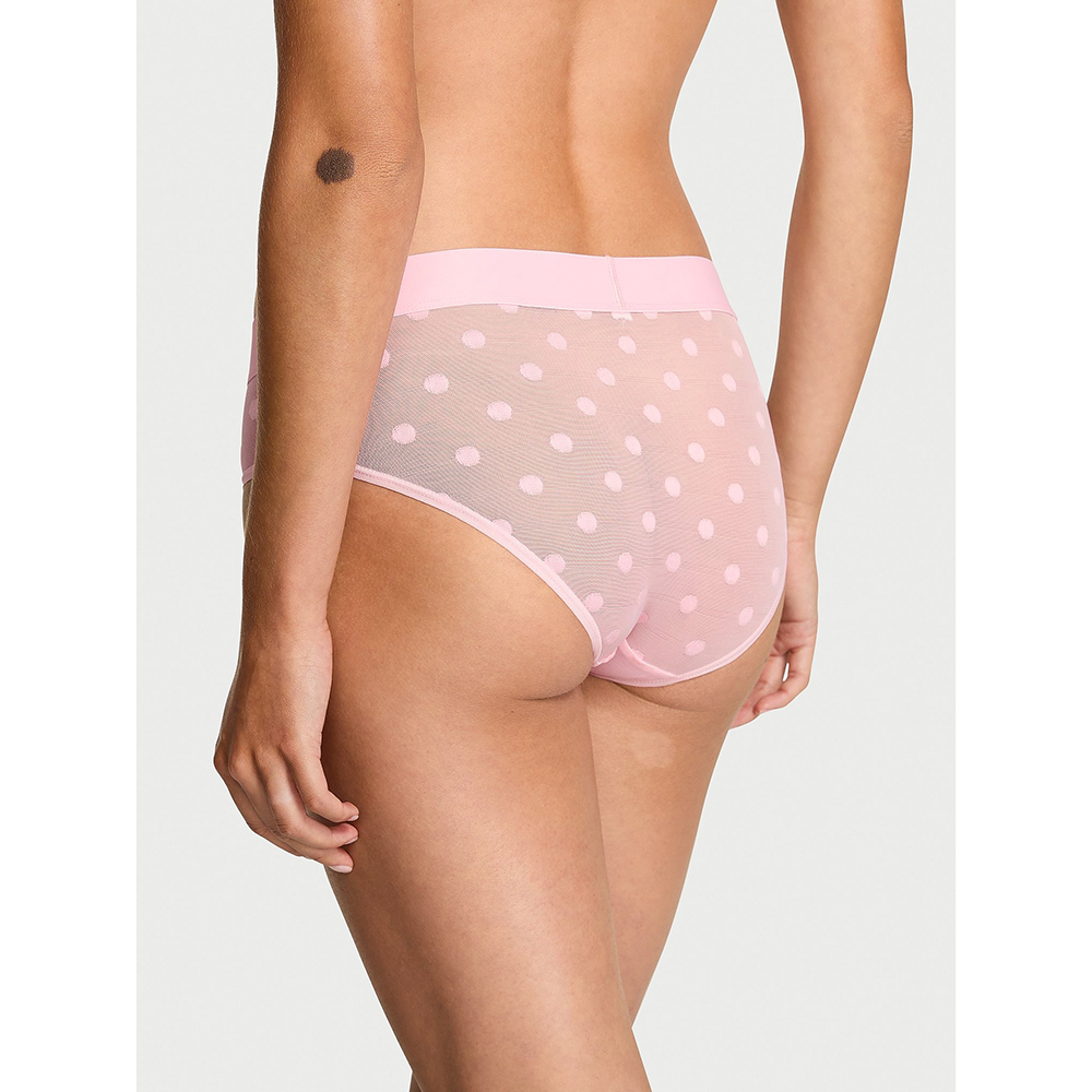 Quần lót Victoria's Secret Sheer Heritage Logo Hiphugger được thiết kế bằng lưới mỏng với họa tiết chấm bi vui nhộn.