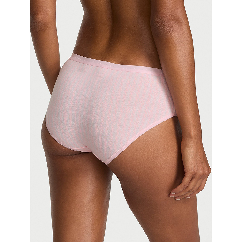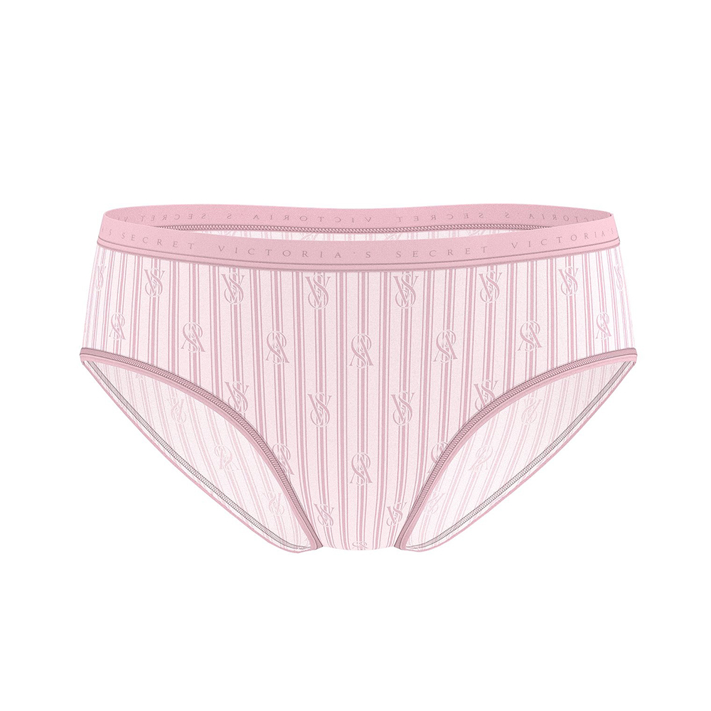 Quần lót Victoria's Secret Stretch Cotton Hiphugger với họa tiết kẻ sọc màu hồng kết hợp logo VS độc đáo.