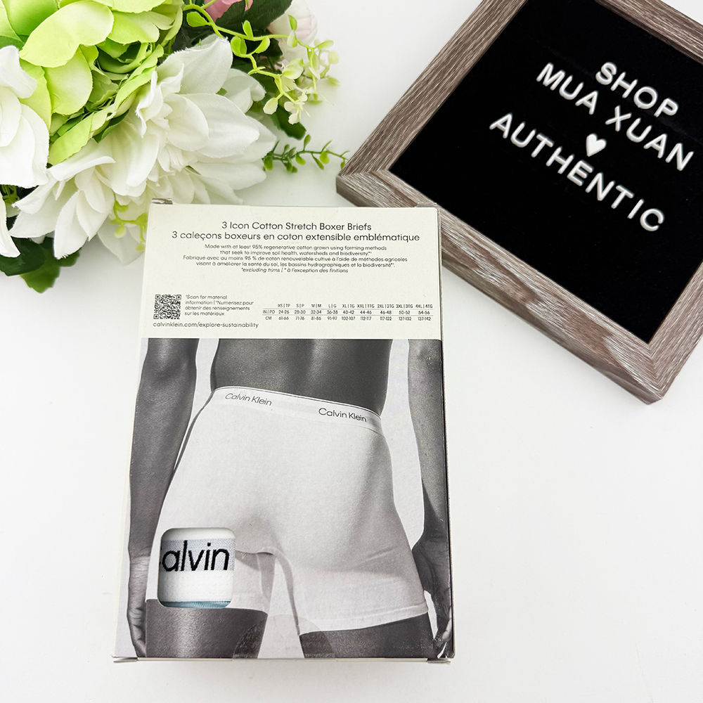 Calvin Klein Boxer Brief (quần đùi dài) với thiết kế lưng quần co giãn, ôm sát phần hông và đùi, giảm thiểu việc quần bị cuộn lên hay bó chặt gây khó chịu.