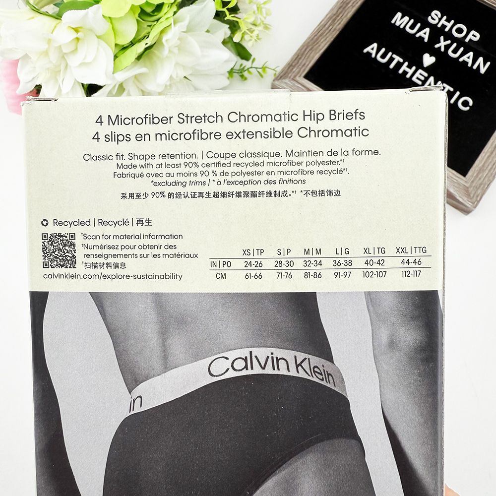 Phần lưng thun màu bạc có logo Calvin Klein màu tương phản, đàn hồi mềm mại.