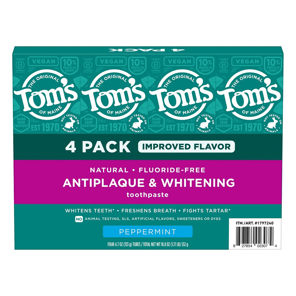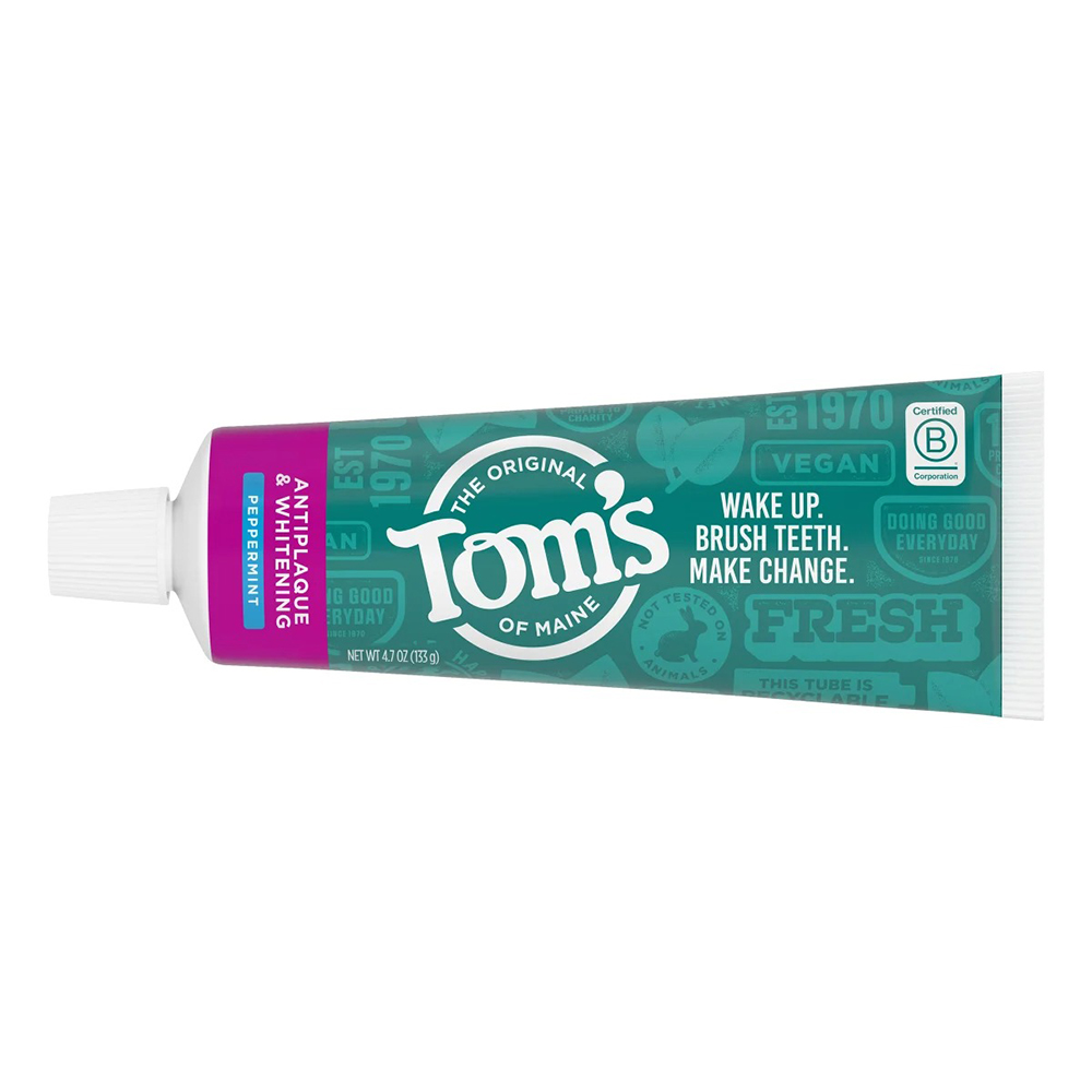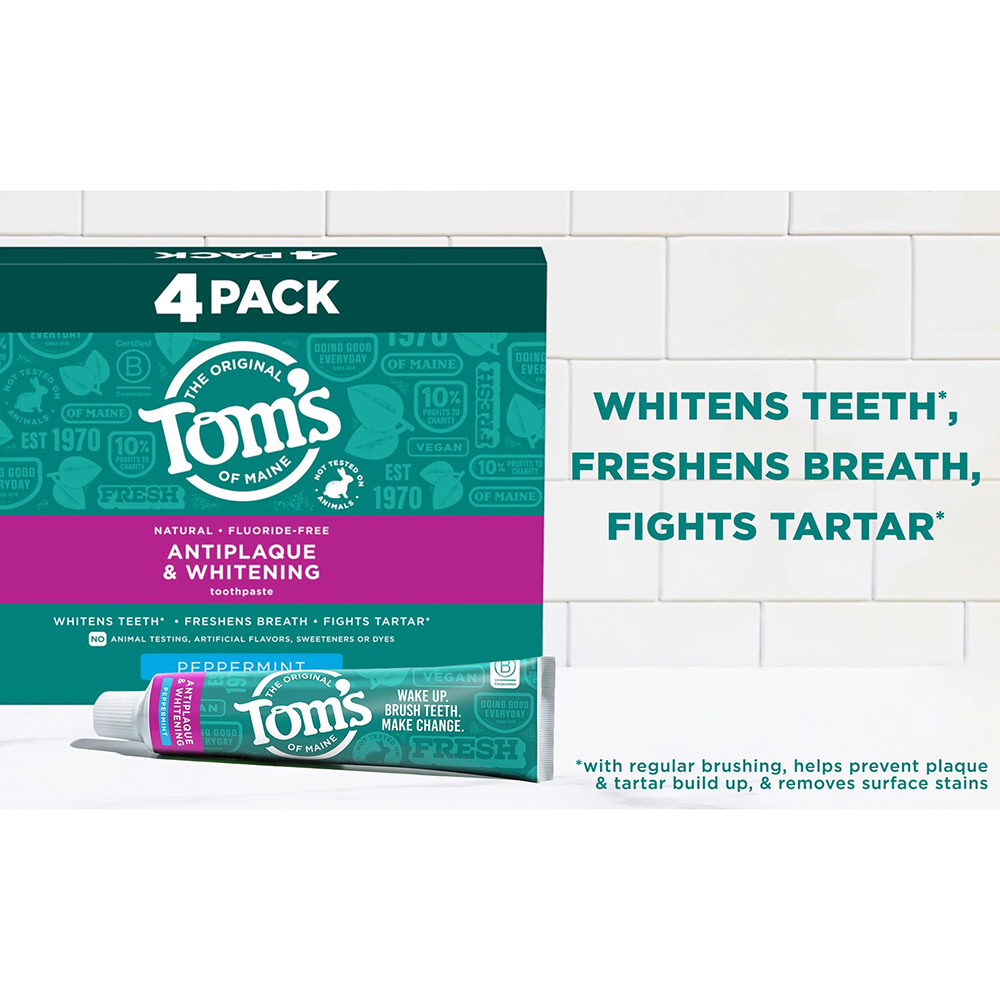 Kem đánh răng Tom's of Maine Antiplaque & Whitening giúp làm trắng răng và ngăn ngừa sự tích tụ cao răng khi đánh răng thường xuyên.