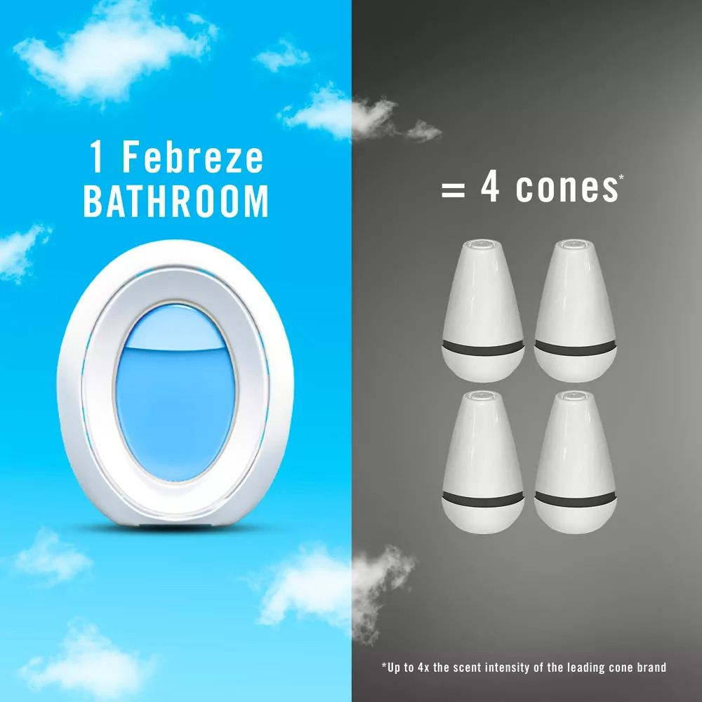 Tinh dầu thơm phòng Febreze Bathroom giúp khử mùi và tỏa hương thơm thơm mát trong những không gian nhỏ như phòng tắm, tủ quần áo, tù giày dép, bồn rửa...
