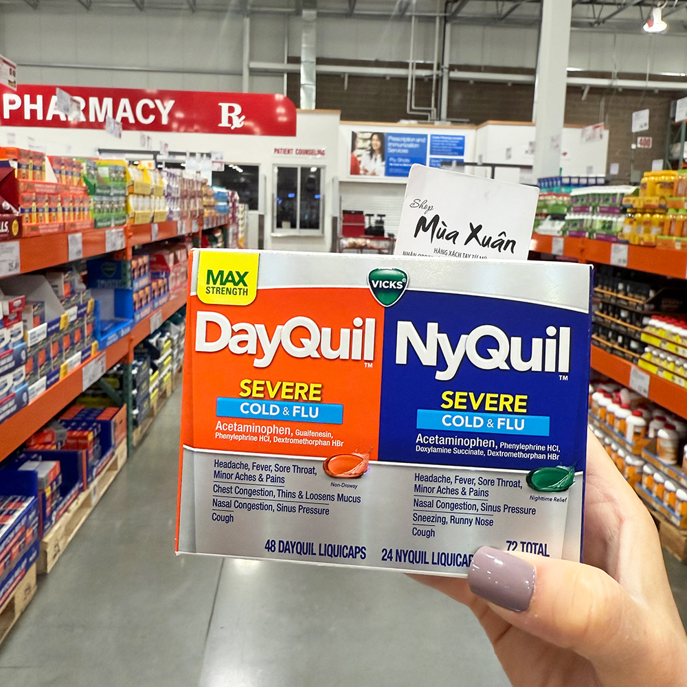 - DayQuil (48 viên dùng cho ban ngày): giảm triệu chứng cảm lạnh và cúm với thành phần không gây buồn ngủ, cung cấp năng lượng suốt cả ngày, không lo mệt mỏi.