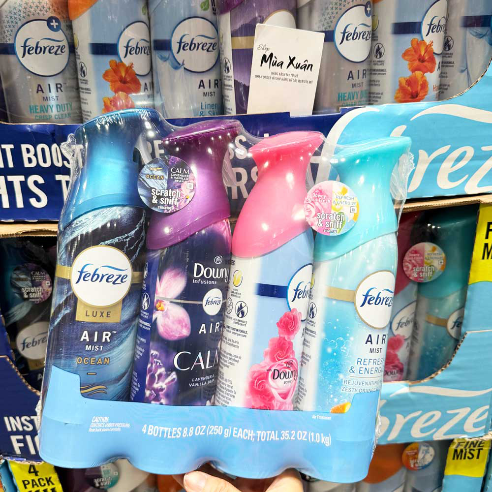 Xịt phòng Febreze làm sạch và loại bỏ mùi hôi trong không khí với các hạt phân tử Cyclodextrin (được làm từ ngô) hoàn toàn tự nhiên và an toàn cho sức khỏe.