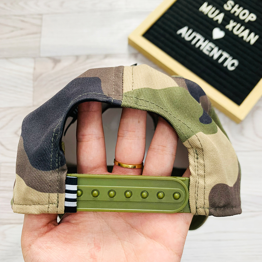 Logo Adidas 3 lá trắng và chữ Adidas được thêu nổi ấn tượng.