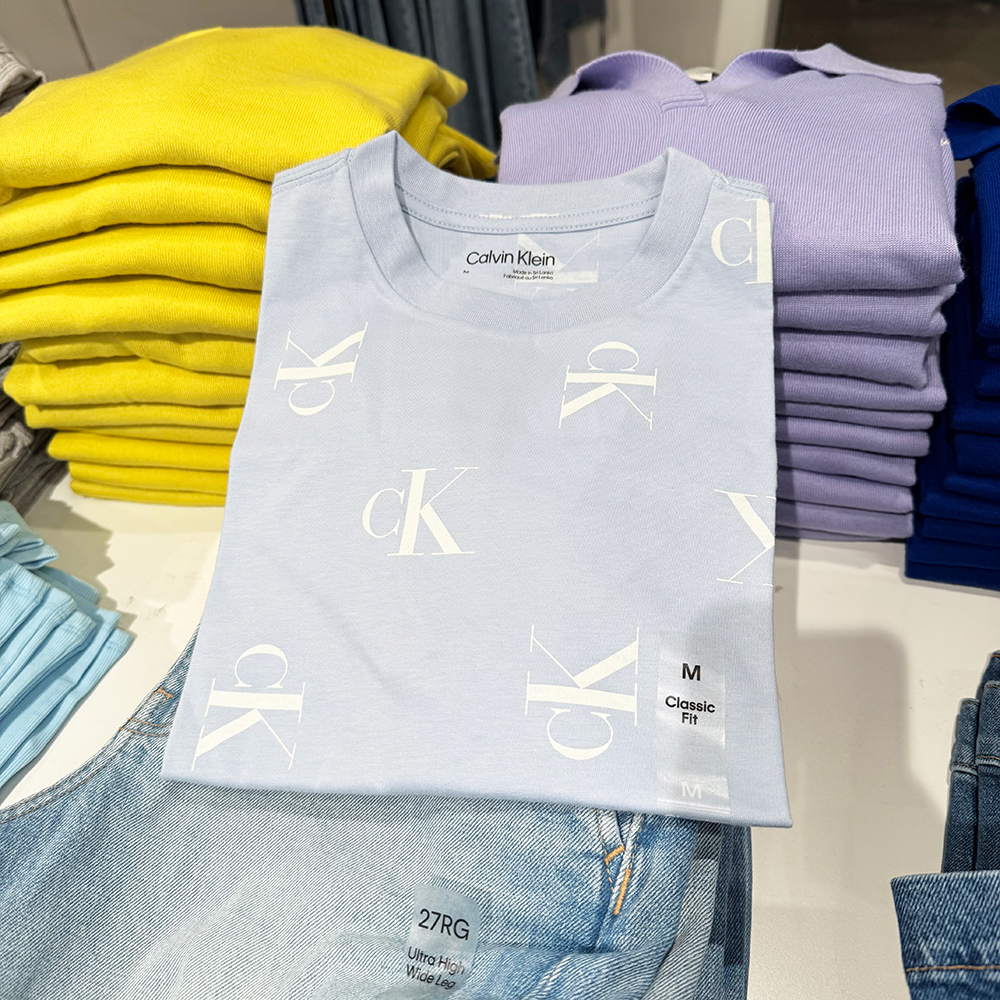Logo CK được in toàn bộ trên áo tạo điểm nhấn.
