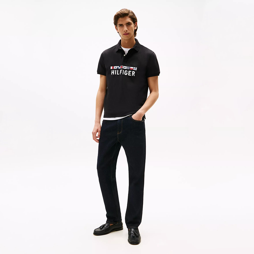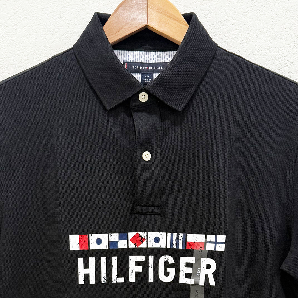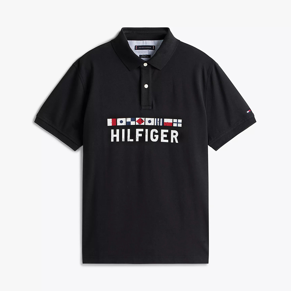 Dãy biểu tượng cờ hàng hải và chữ Hilfiger được in trước ngực áo tạo điểm nhấn.
