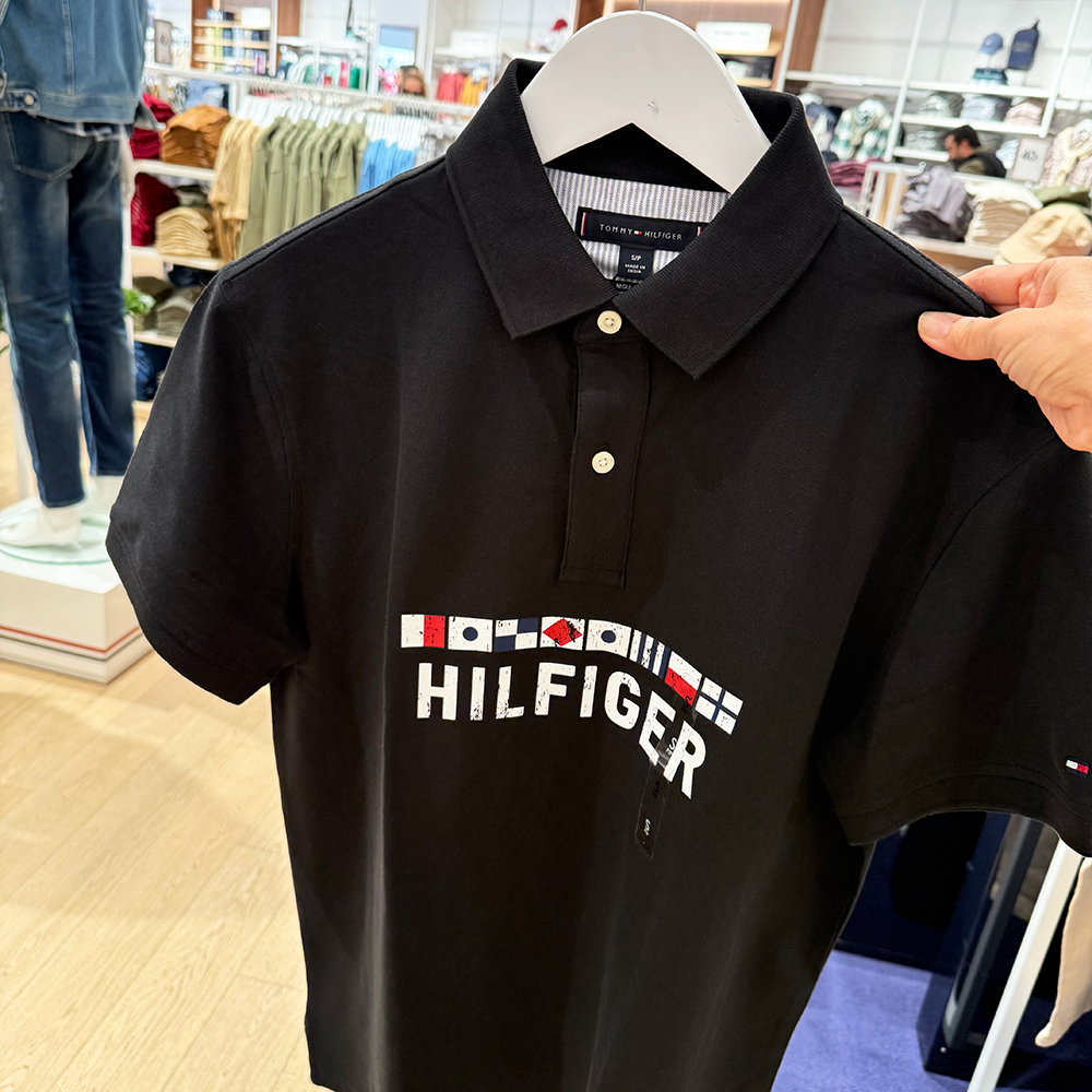 Dãy biểu tượng cờ hàng hải và chữ Hilfiger được in trước ngực áo tạo điểm nhấn.