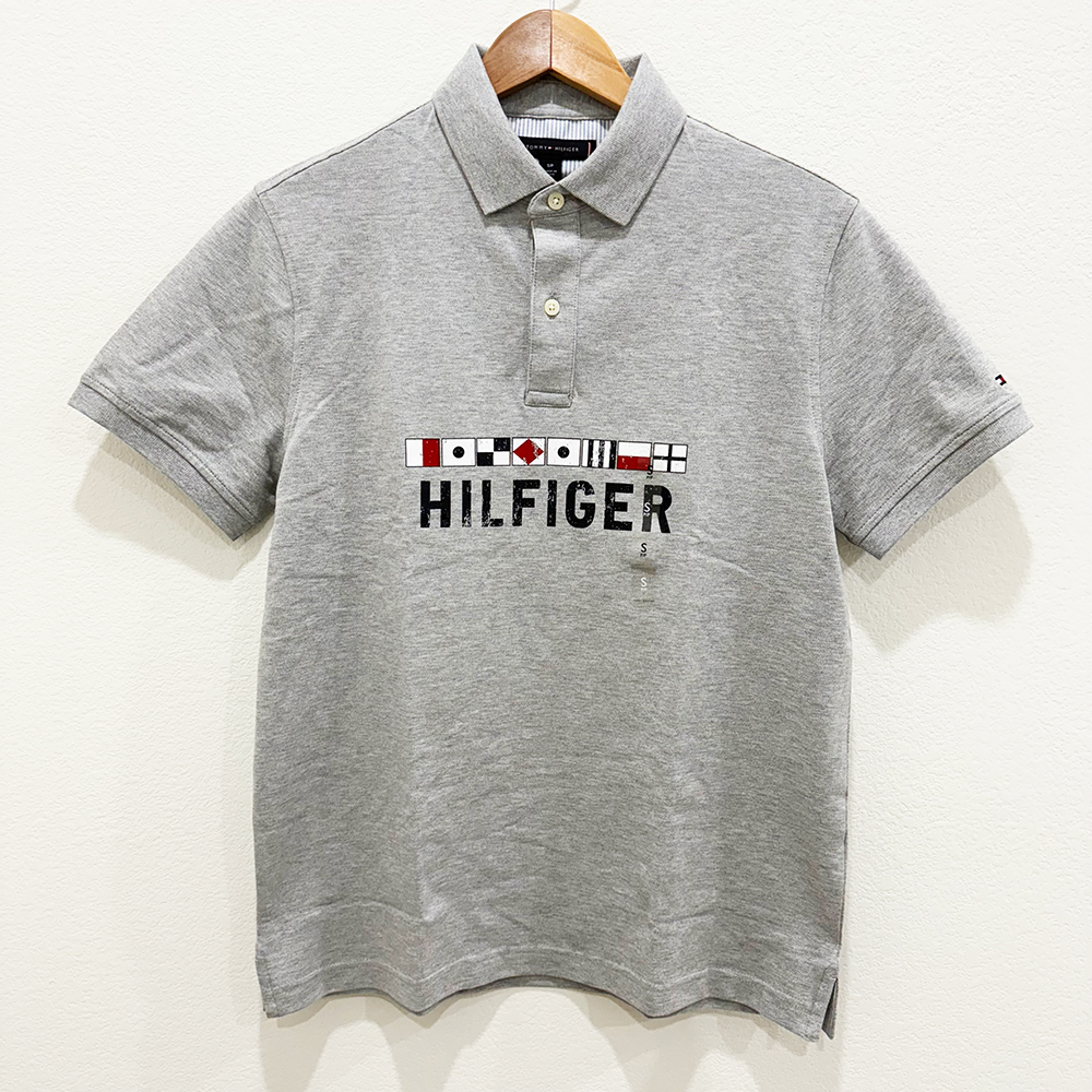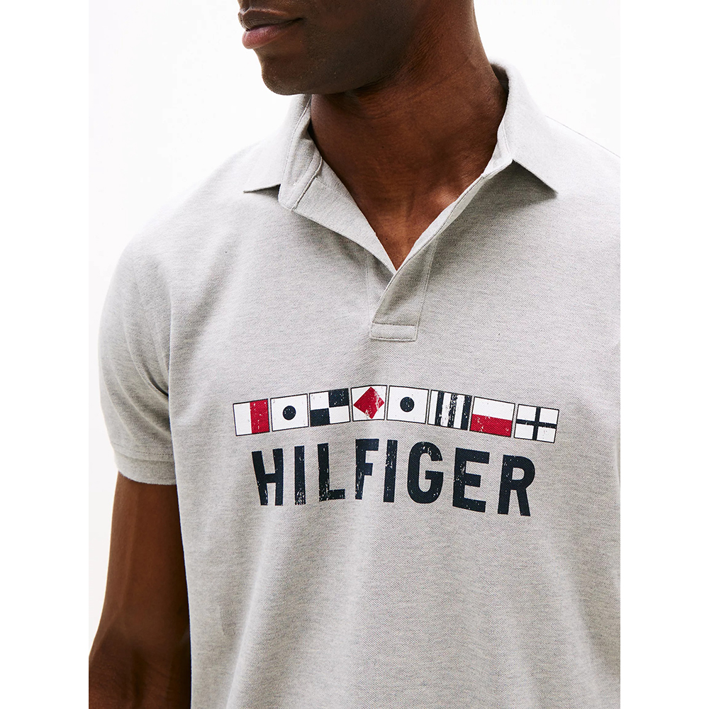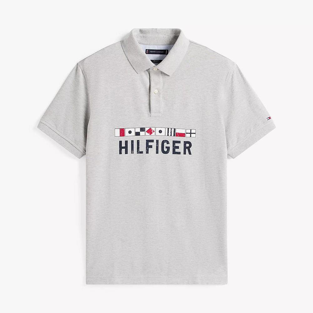 Dãy biểu tượng cờ hàng hải và chữ Hilfiger được in trước ngực áo tạo điểm nhấn.
