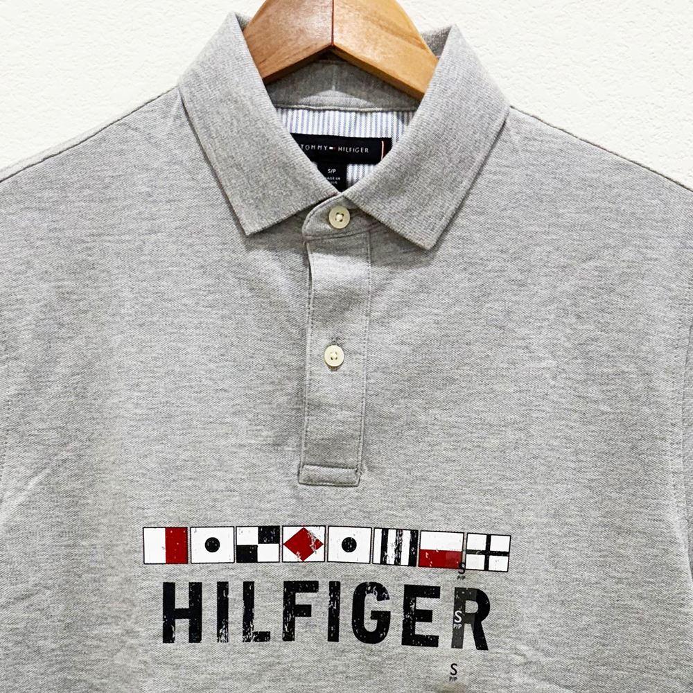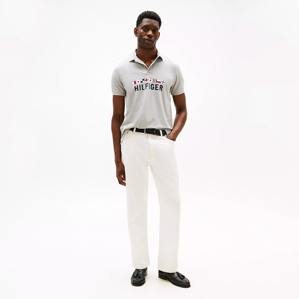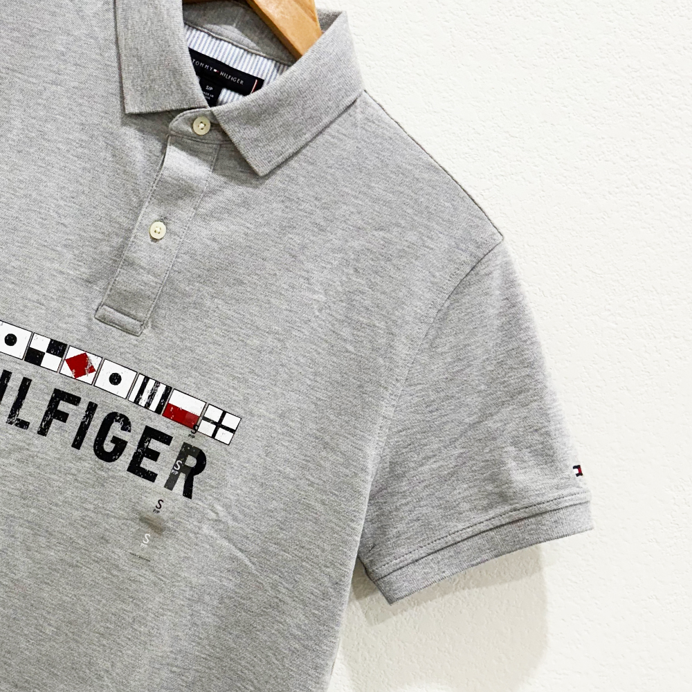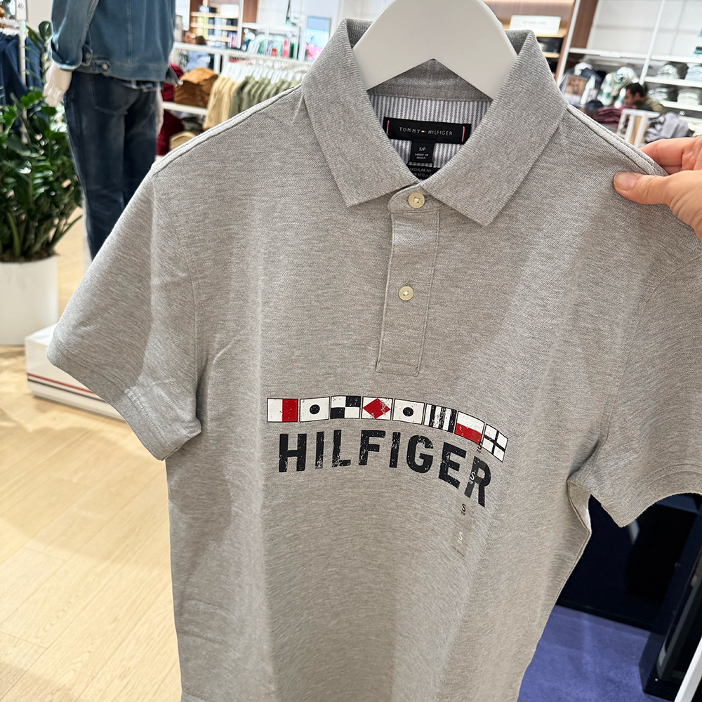 Dãy biểu tượng cờ hàng hải và chữ Hilfiger được in trước ngực áo tạo điểm nhấn.