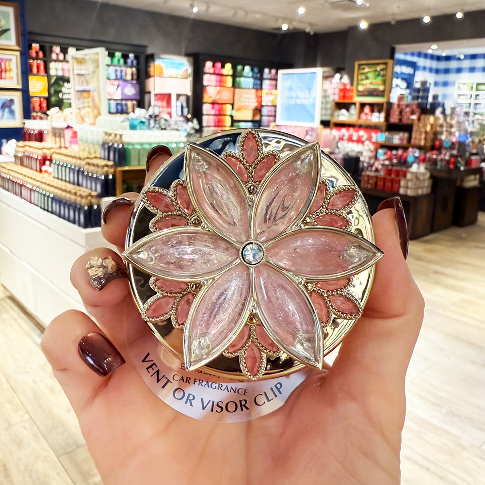 Dụng cụ chứa tinh dầu thơm xe Bath & Body Works Sparkle Burst với thiết kế bông hoa đính pha lê giúp không gian trong xe trở nên sang trọng hơn.