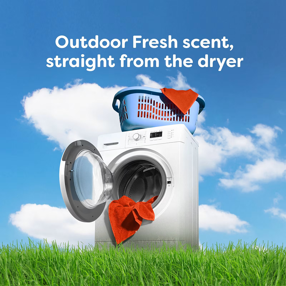 Tạm biệt tĩnh điện và nếp nhăn, chào đón sự tươi mát với Giấy thơm sấy quần áo Bounce Outdoor Fresh, được bao bọc trong hương thơm của ngày hè.