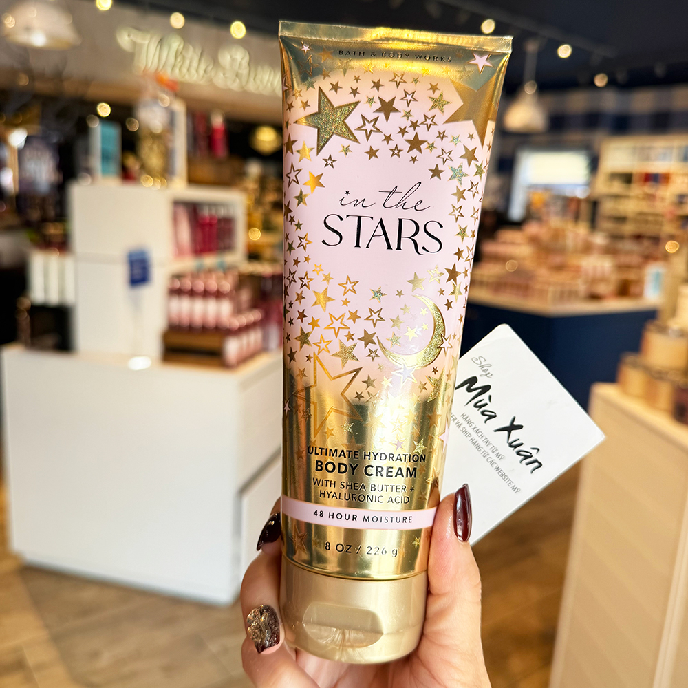 Kem dưỡng da Bath & Body Works In The Stars là sự pha trộn ấm áp, lấp lánh của hoa sao, xạ hương, gỗ đàn hương, quýt đường, gỗ trầm hương trắng và hổ phách rạng rỡ.