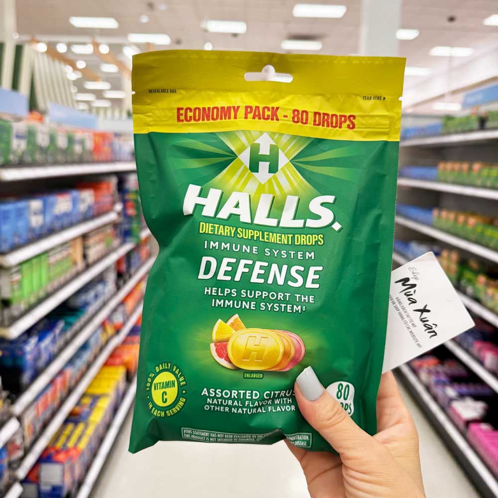 Với mỗi 2 viên kẹo Halls Defense chứa 135mg vitamin C, giúp tăng cường sức đề kháng, hỗ trợ hệ thống miễn dịch khỏe mạnh.