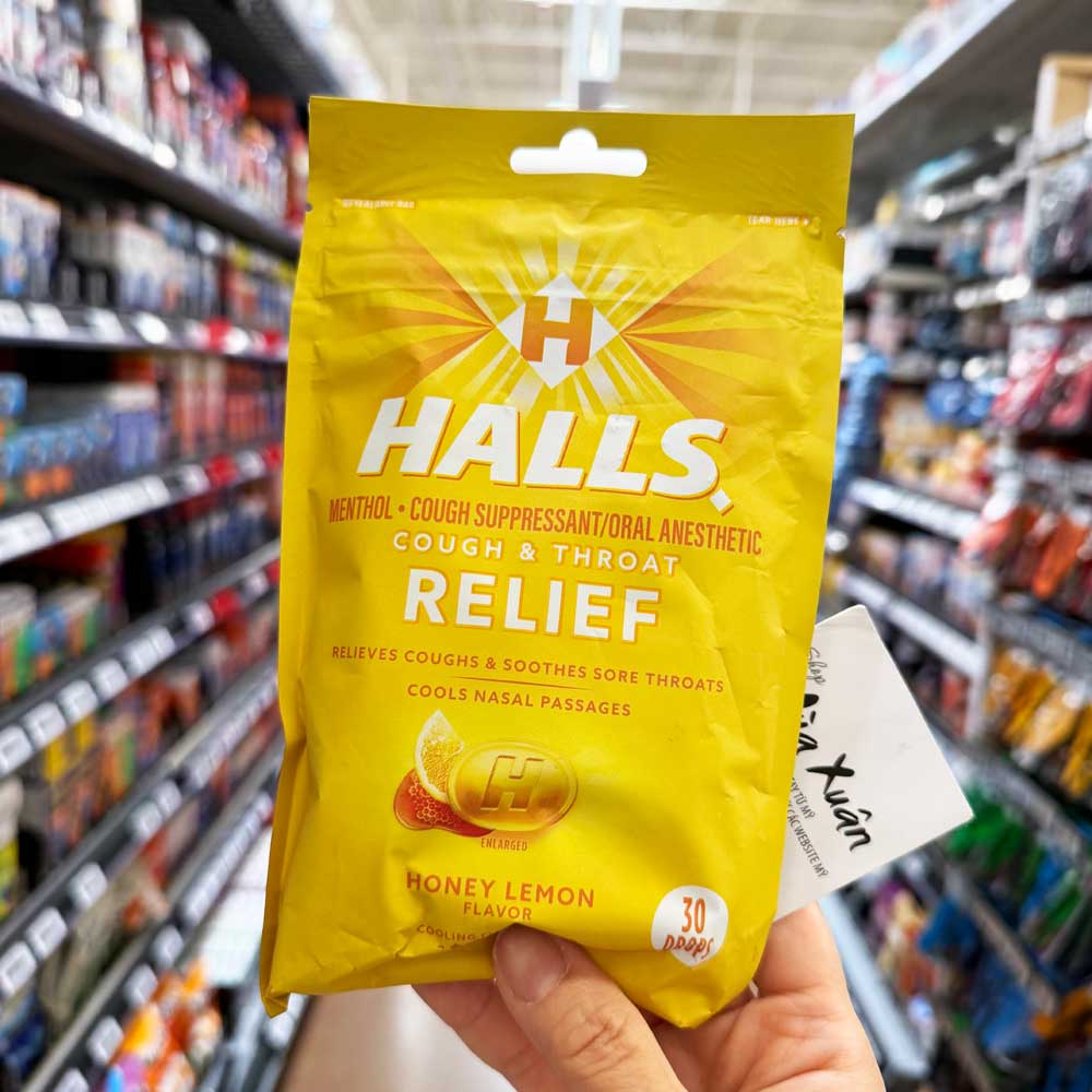 Kẹo ngậm Halls chống ho, làm dịu cổ họng và nghẹt mũi.