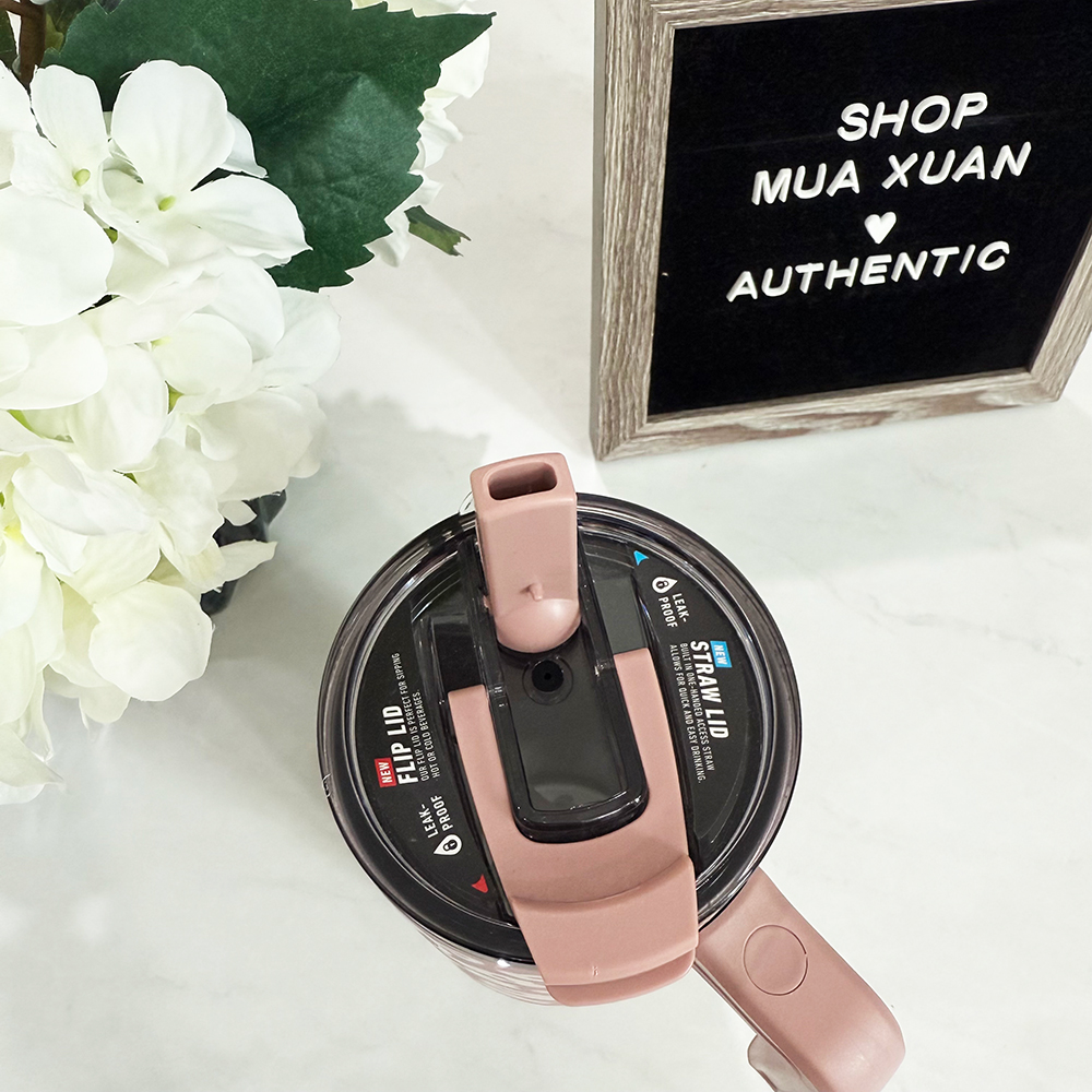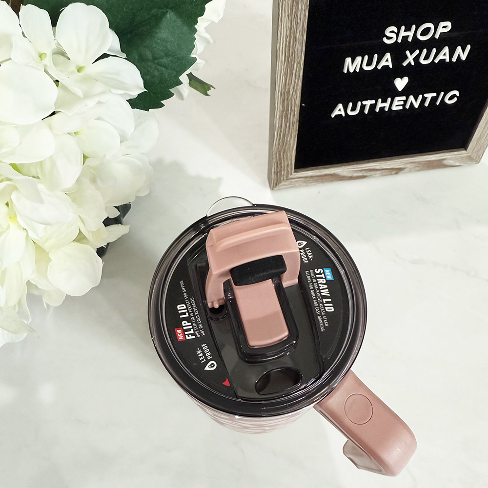 Nắp với thiết kế vòi hút giúp uống nước nhanh và tiện lợi, uống với nắp lật hoặc uống tùy thích với nắp lớn, miệng ly rộng dễ dàng vệ sinh.