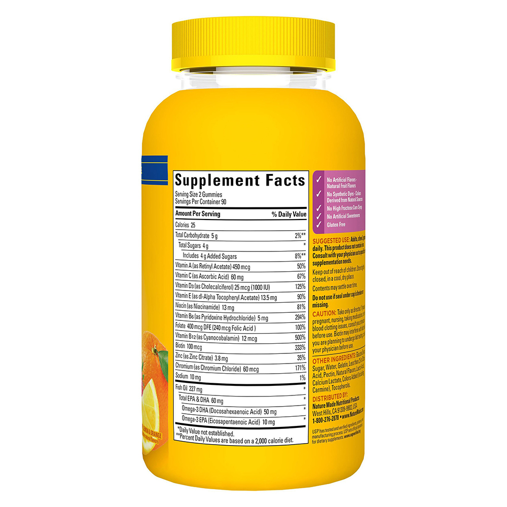 Mỗi 2 viên dẻo cung cấp các loại vitamin thiết yếu hỗ trợ dinh dưỡng hàng ngày, cùng 60 mg EPA và DHA omega-3 từ dầu cá giúp hỗ trợ sức khỏe tim mạch.