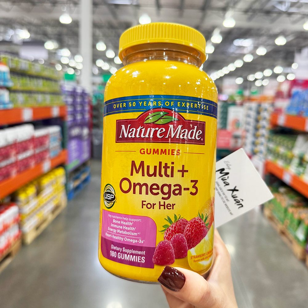 Viên dẻo Nature Made Multi for Her + Omega-3 được đặc chế để hỗ trợ sức khỏe xương, hệ miễn dịch và quá trình chuyển hóa năng lượng dành riêng cho nữ giới.