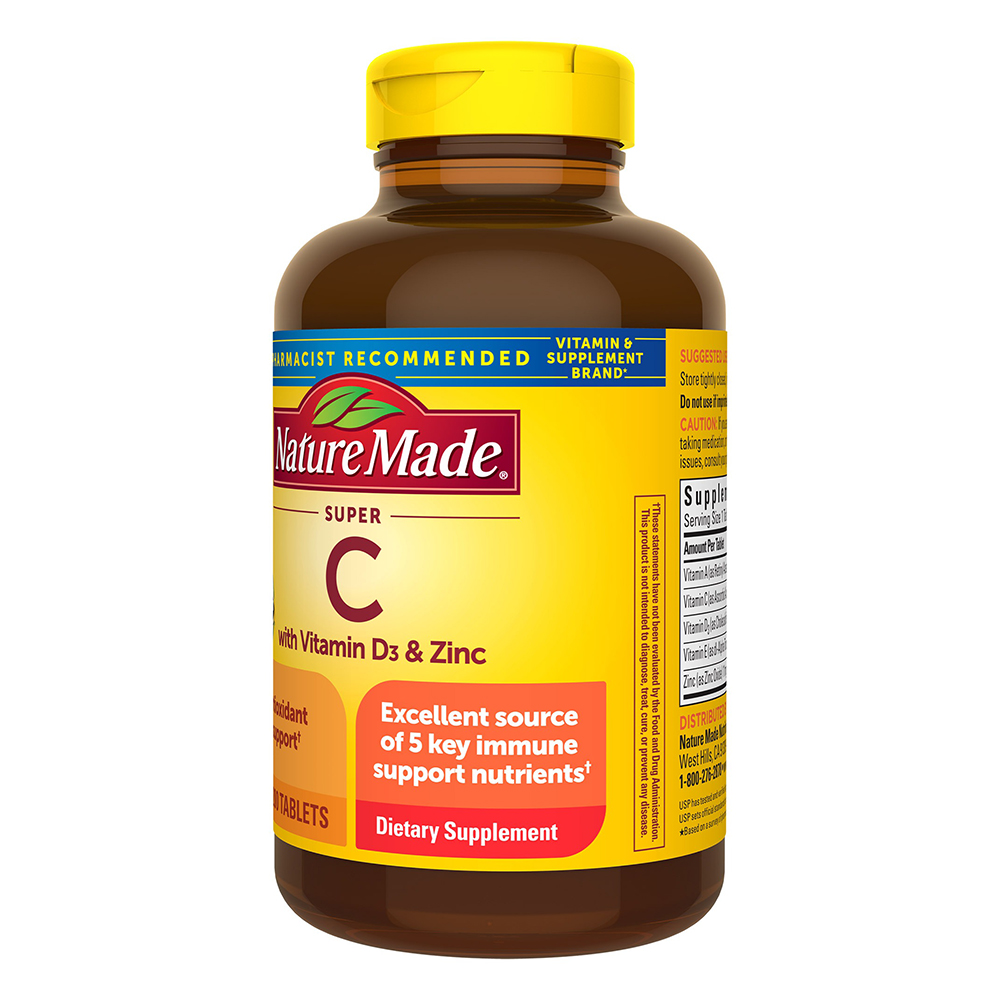 Nature Made Super C + Vitamin D3 cung cấp toàn bộ các chất dinh dưỡng hỗ trợ miễn dịch chỉ trong một viên uống hàng ngày.