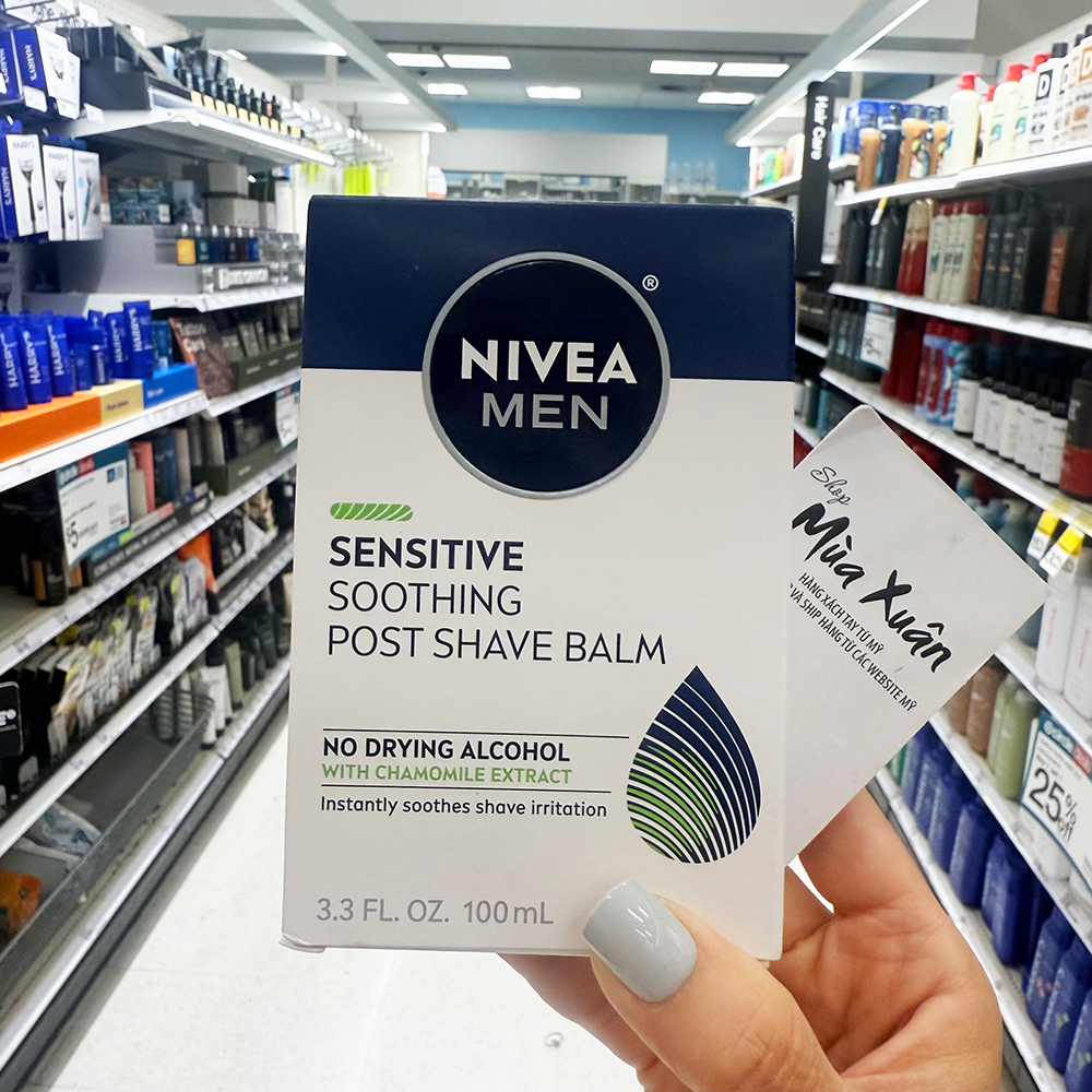 Dưỡng da sau khi cạo râu Nivea Men Sensitive với thành phần giàu vitamin E, tinh dầu hoa cúc và chiết xuất cây phỉ giúp dưỡng ẩm, làm dịu làn da, chống lại 5 dấu hiệu kích ứng như vết sưng tấy, vết cắt, căng da, mẩn đỏ, bỏng rát và châm chích, đồng thời cải thiện tình trạng da theo thời gian.