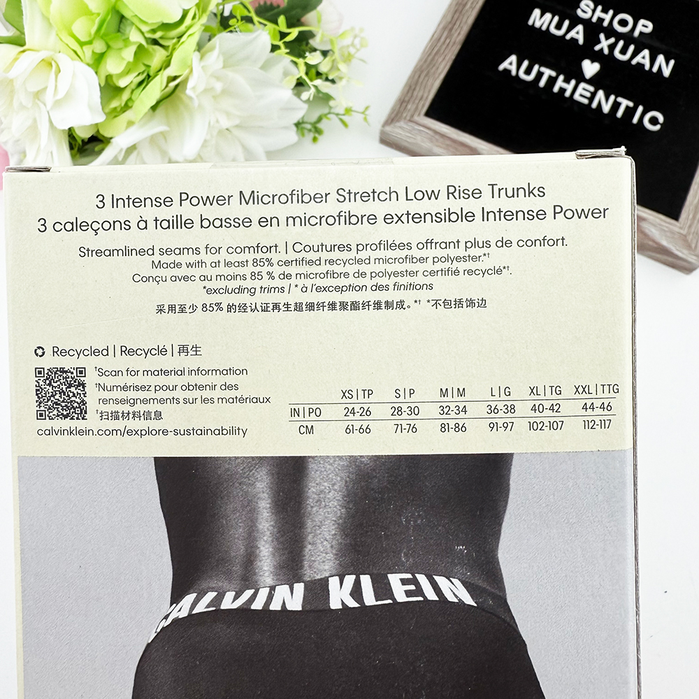 Set 3 quần Calvin Klein Intense Power Micro Low Rise Trunk - Teal/Black/Grey, Size S