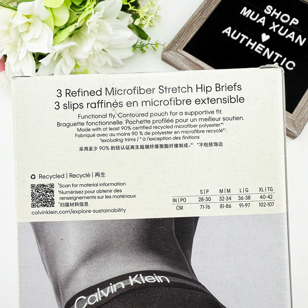 Calvin Klein Hip Brief (quần tam giác) có thiết kế lưng quần co giãn, đường cắt cao sát phần hông và chân, duy trì sự thoải mái suốt ngày dài.